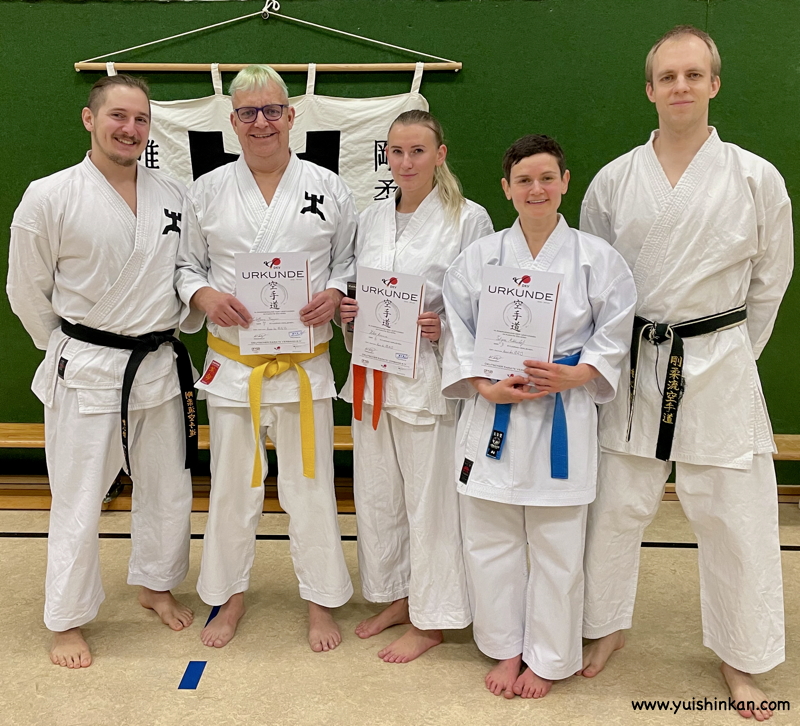 Die Prüflinge zeigten ordentliche Leistungen, so dass am Ende alle ihre Urkunde mit dem neuen Kyu-Grad mit nach Hause nehmen konnten.