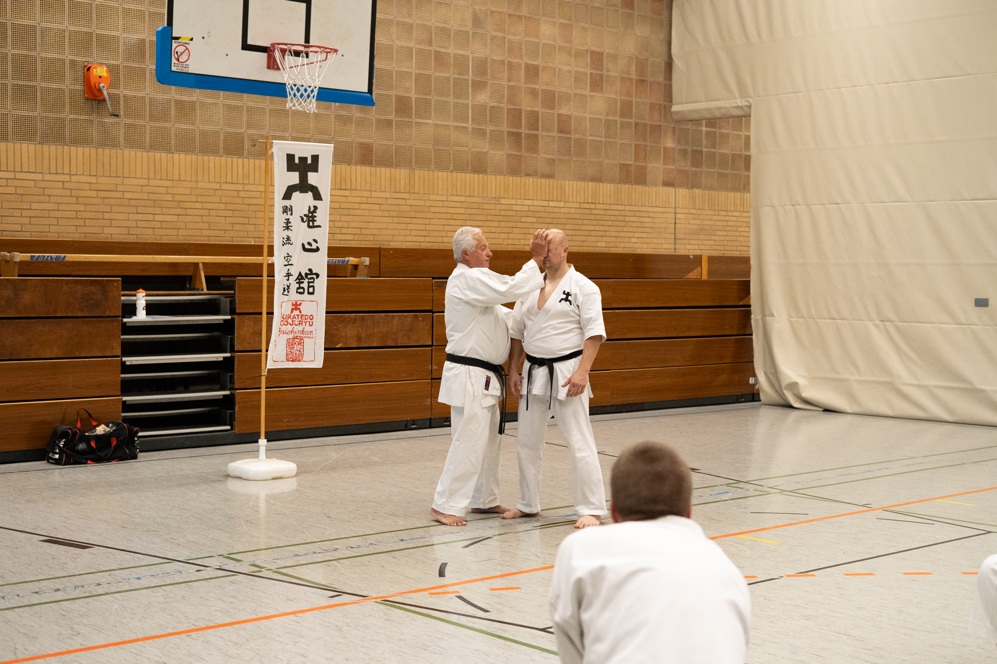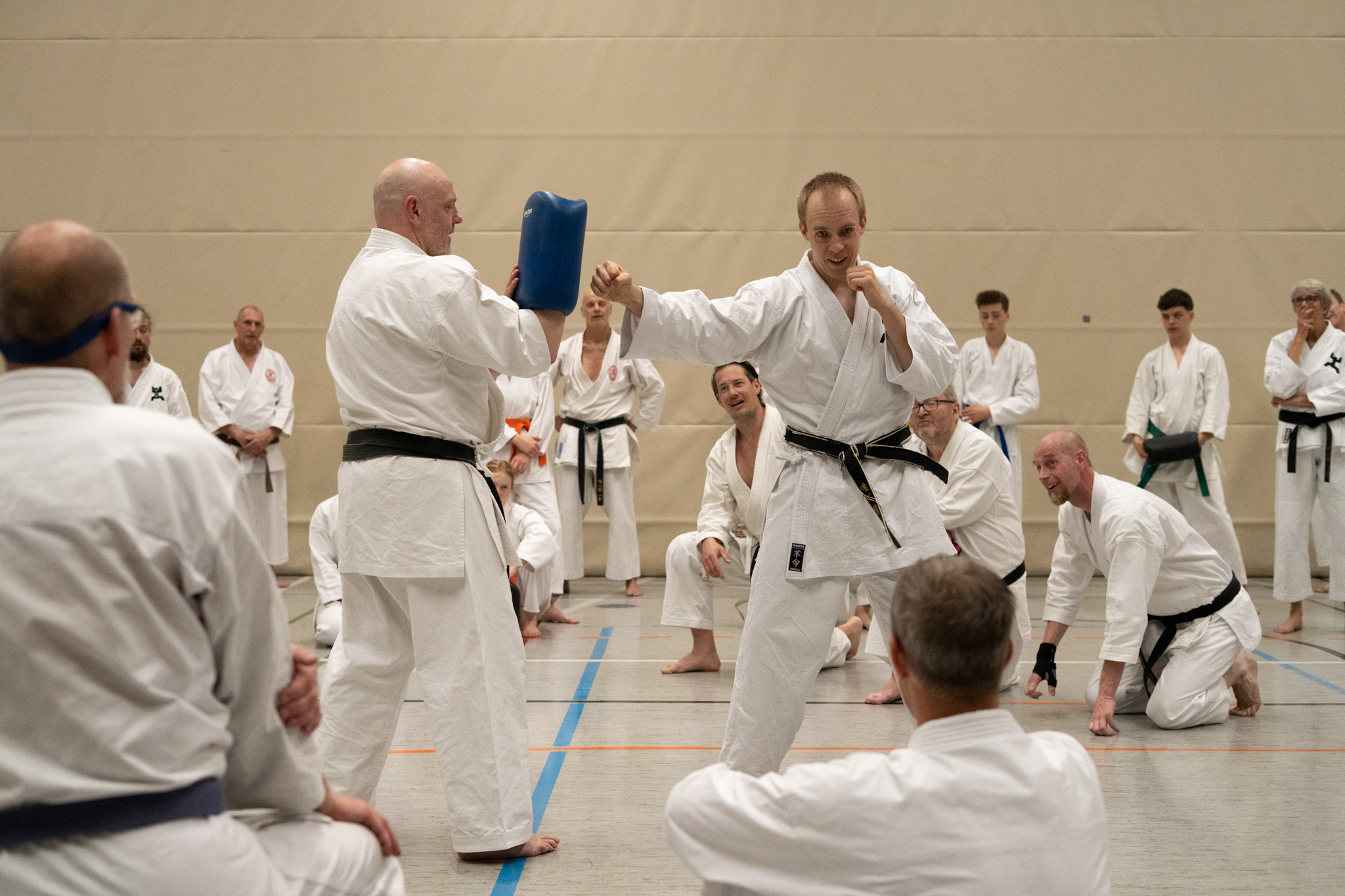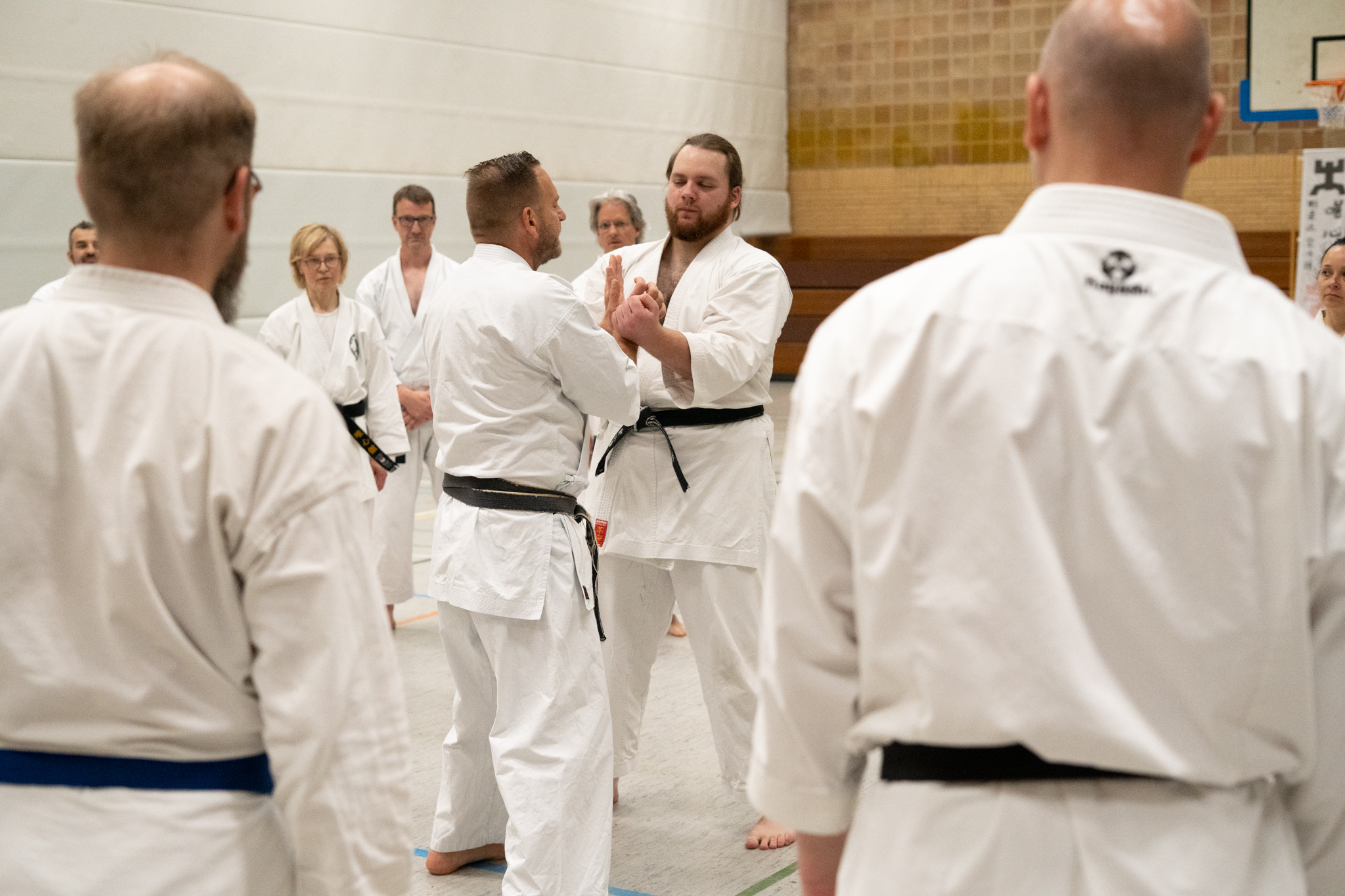 Kata-Bewegungen wurden in praxisbezogene Anwendung überführt. Ziel war es, konkrete Einsatzmöglichkeiten im Bereich Selbstverteidigung zu vermitteln.