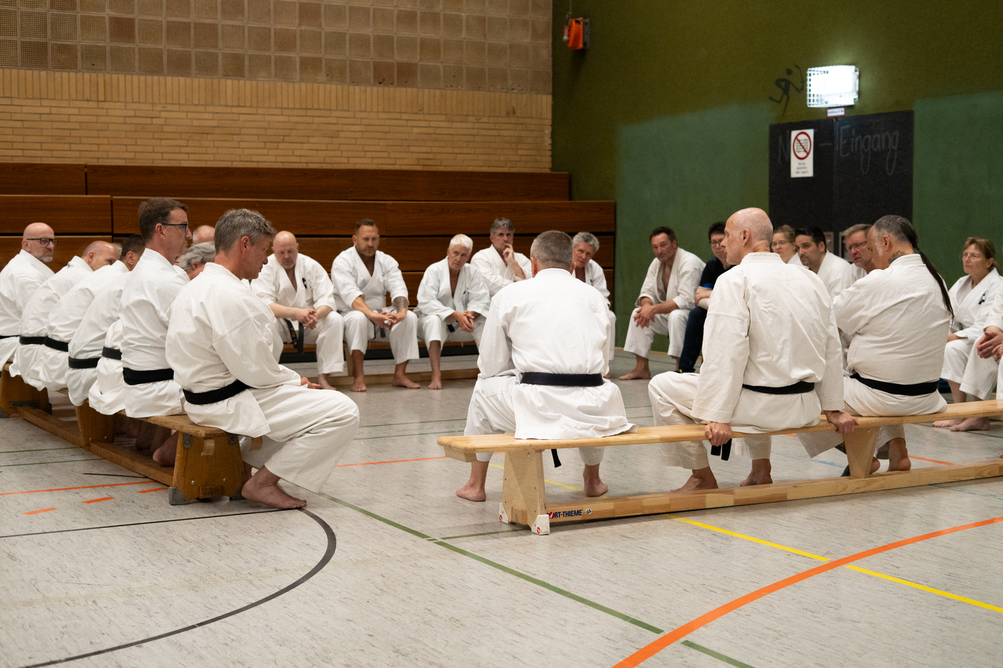 Parallel zur letzten Trainingseinheit fand eine offene Gesprächsrunde mit den Lehrenden des Lehrgangs statt. Fragen zur Technik, Philosophie und Trainingspraxis wurden besprochen und gemeinsam reflektiert.