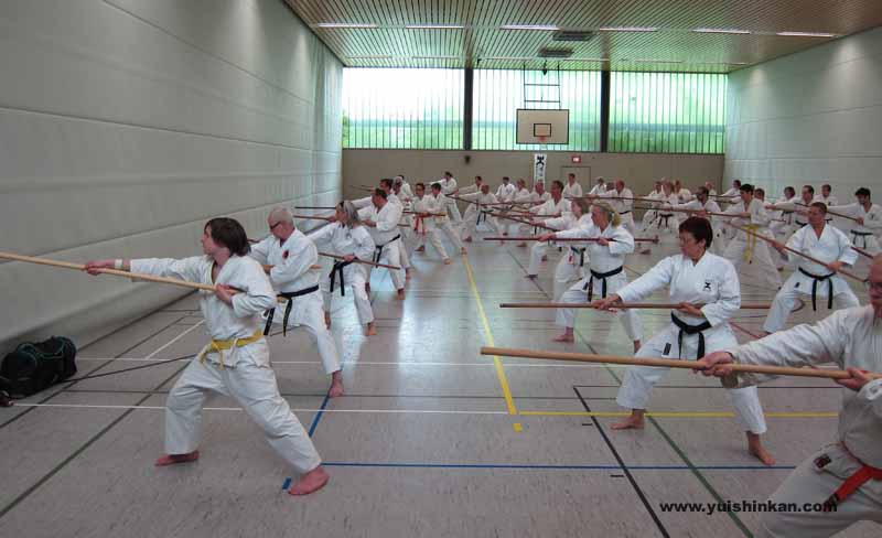 Extra aus den Philippinen war Lutz Klemann angereist. Er bot traditionelles Goju-Ryu aus dem Yuishinkan an, wie es Fritz Nöpel selber in Japan erlernt hat. Diese Art des Trainings dürfte vor allem bei den Erfahrenen Erinnerungen an alte Zeiten geweckt haben, als doch anders und auch um einiges härter als heute trainiert wurde.