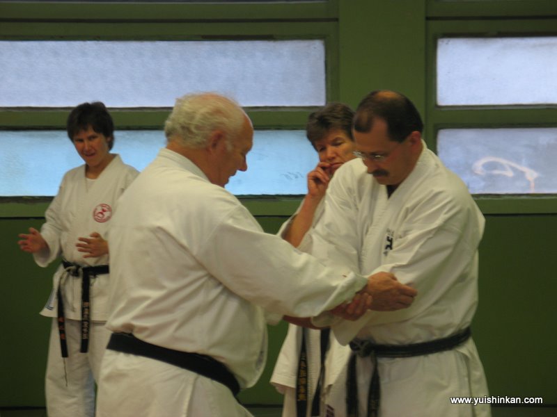 seine eigenen Bunkai-Formen präsentieren kann, womöglich noch gespickt mit akrobatischen Einlagen? Sensei Nöpel hat bei diesem ersten Dansha-Lehrgang dieses Jahres gezeigt, dass es unabdingbar ist, sich nicht nur mit den Omote-Formen zu beschäftigen, sondern sie auch zu verstehen. Nur dadurch erlangt man einen Zugang zu den Bewegungen in der Kata und ihrer Bedeutung. Für viele sehr hilfreich war in diesem Zusammenhang sicherlich, dass für die Prüfung zum 1.Dan, die Omote-Form der Bunkai vollkommen ausreicht. Erst mit den Prüfungen zum 2. und den nächsten Dan-Graden, können und sollten später individuelle Veränderungen mit einfließen. Immer unter dem Gesichtspunkt, dass die Kata zu erkennen ist. Es darf auch nicht dazu führen, dass die Kata an die Bunkai-Form angeglichen wird.