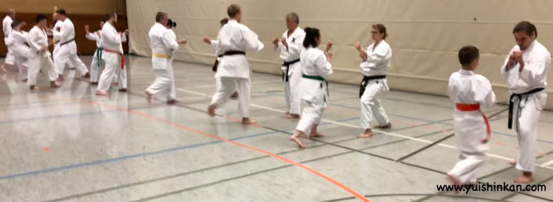 Als letztes wurde die erste Form aus dem Kihon Ippon Kumite geübt (Angriff im Zenkutsu Dachi mit Tsuki Jodan, Abwehr im Zenkutsu Dachi mit Age Uke und Tsuki Chudan als Konter).