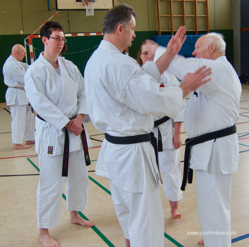 Anschließend stellte er Omote-Bunkai-Formen vor, die mit dem Partner geübt wurden.